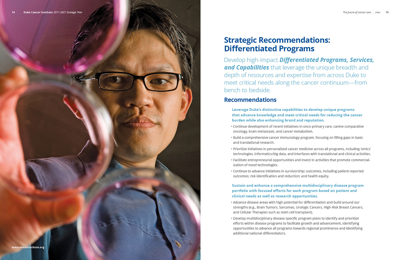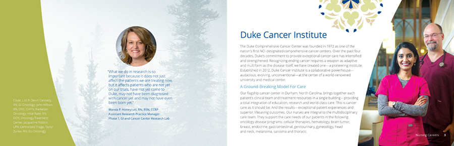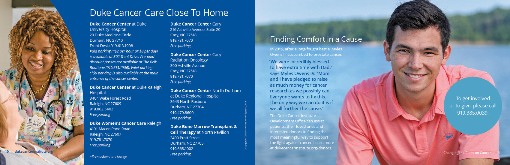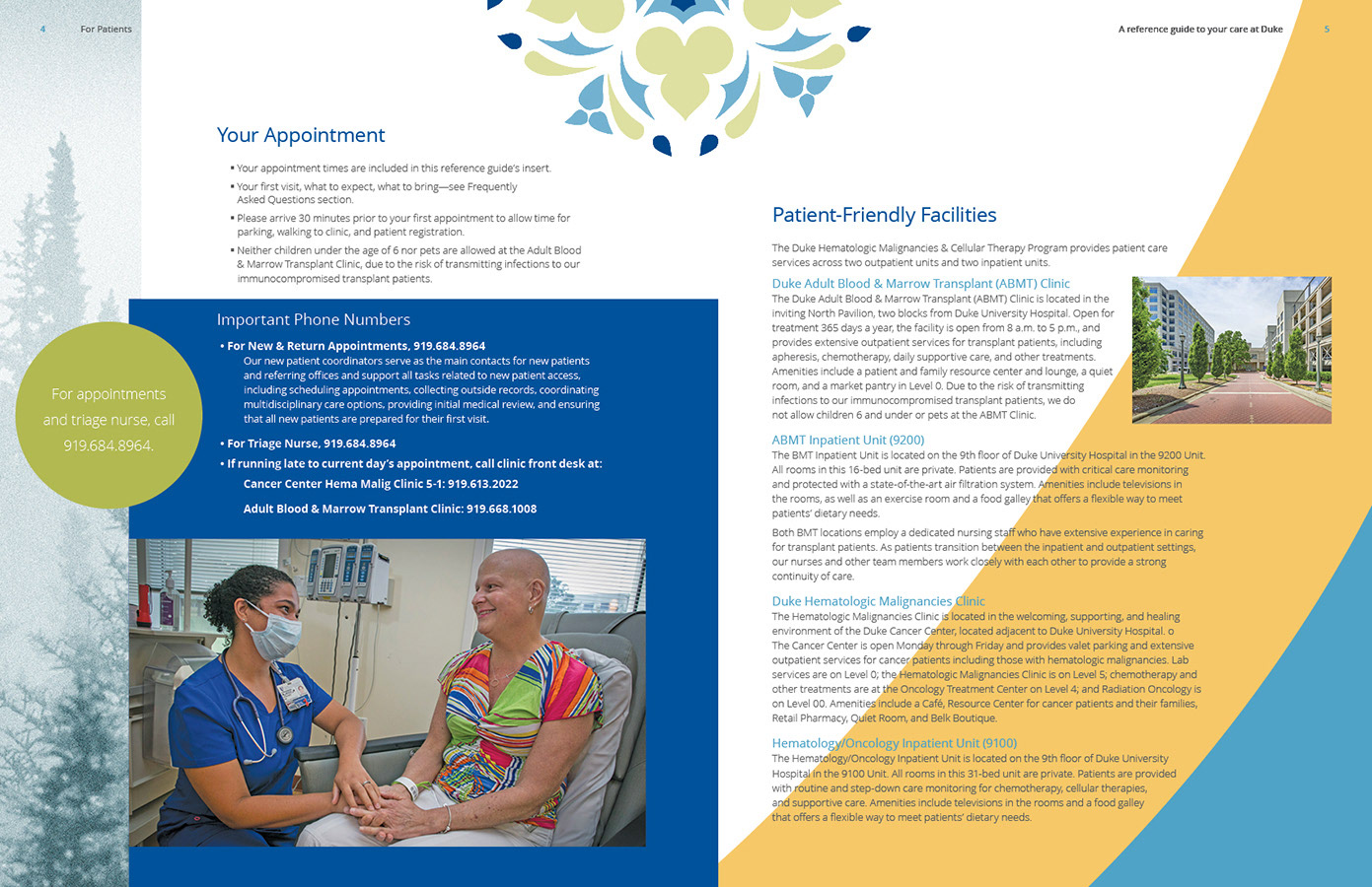 Guidebooks for new patients, Nurse Recruiting brochure, General DCC brochure, Duke Cancer Institute Strategic Plan, CancerCare Newsletter for patient support