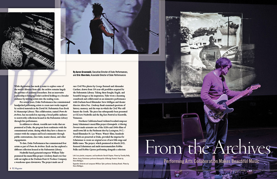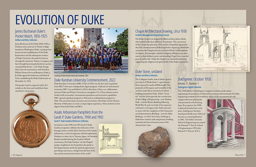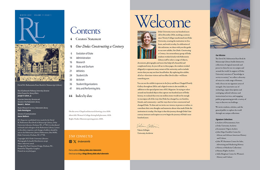 Duke Centennial Exhibit issue RL Magazine, 2024. Duke University Libraries Magazine and RL Magazine; collaboration with Jim Jarvis, West Side Studio through 2021.